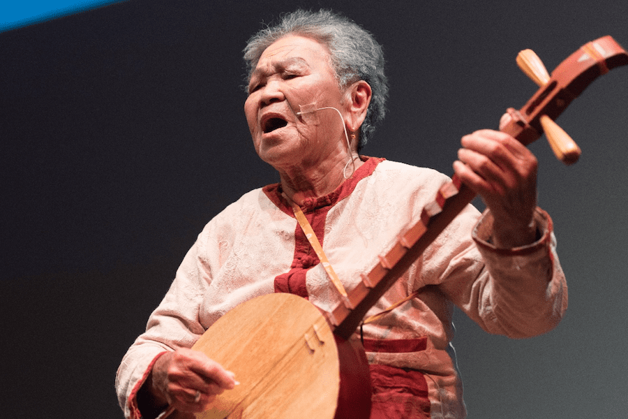 ▲滿州民謠保存者,人間國寶張日貴。(圖/屏東縣政府文化處 提供)