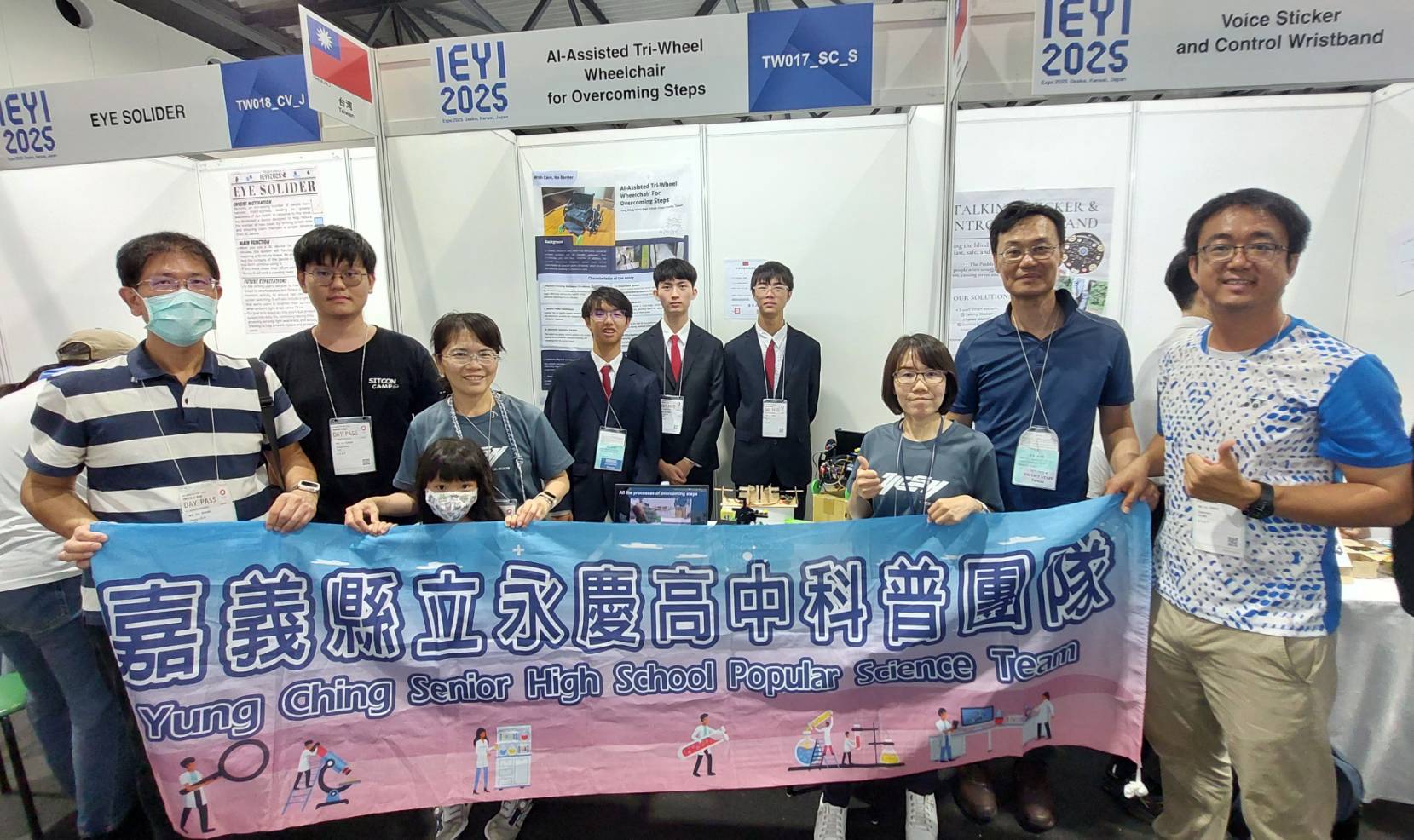 嘉義縣學子參加國際競賽捷報頻傳,永慶高中學生團隊近日以作品「AI輔助過坎三角輪椅」參加在日本大阪舉辦的「2025年IEYI世界青少年發明展」,榮獲銀牌獎與Panasonic Innovation Award特別獎雙料大獎,佳績振奮人心。