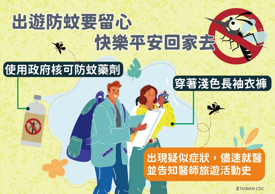疾管署呼籲,民眾前往瘧疾流行地區,請至少於出國前一個月,至國內旅遊醫學門診諮詢,並依醫師指示於出國前、出國期間及返國後持續不中斷服用瘧疾預防藥物;旅遊期間請穿著淺色長袖長褲,塗抹政府機關核可的防蚊藥劑,儘量安排住在有紗門紗窗的房舍;返國後如出現疑似症狀應儘速就醫,並主動告知醫師旅遊史及曾服用的瘧疾預防藥物等資訊,以做為診斷與治療參考。