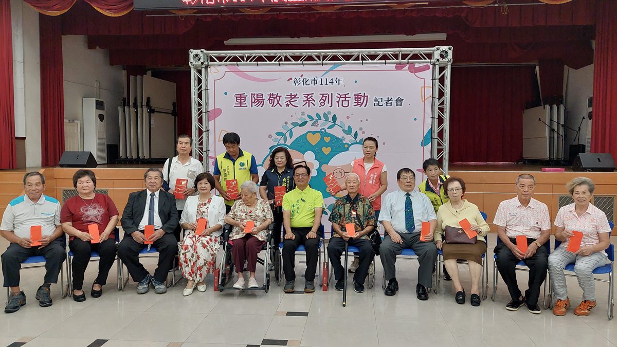 彰化市目前全市的百歲人瑞共有42位,七十歲以上長者計30,922位。3日的重陽敬老系列活動記者會,特別邀請已高齡102歲的人瑞張起龍先生、魏林鴛鴦女士;結婚滿60年的鑽石婚伉儷:吳連源與吳林淑夫婦、王進福與王黄秀灼夫婦;以及結婚50年的金婚伉儷:張啓暉與魏淑眞夫婦、陳坤得與陳黄麗美夫婦到場接受公所的祝福。
