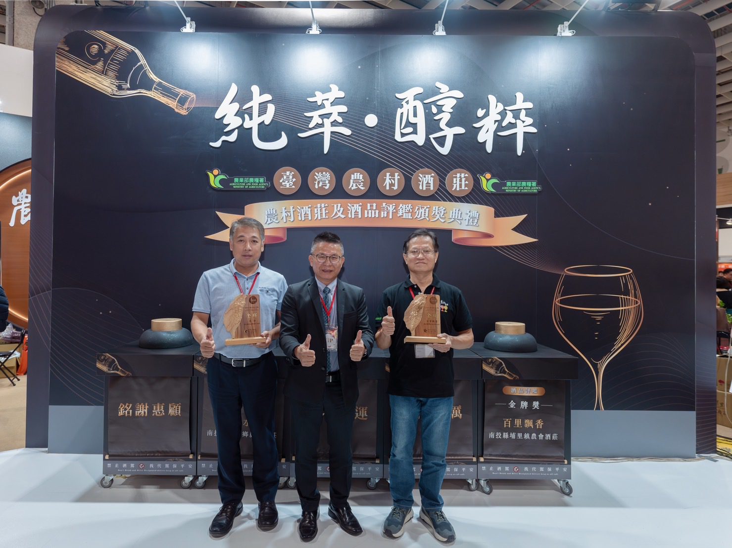 農糧署表示,農村酒莊以在地生產之香米、梅子、玫瑰、芋頭等特色農產品製酒,所生產之釀造酒、再製酒及蒸餾酒均具獨特風味,口感層次豐富,獨樹一格。每2年舉辦之農村美酒評鑑由專業品評員進行官能品評,今年度共有16款酒品入選,其中金牌獎由南投縣信義鄉農會酒莊「柔水」及埔里鎮農會酒莊「百里飄香」等2款酒品奪得;該署於活動現場逐一公布獲獎名單,並頒贈獎牌鼓勵得獎酒莊經營業者。農糧署進一步表示,農村美酒品質具世界一流水準,該署今年輔導農村酒莊報名2023布魯塞爾世界酒類競賽,在57個國家、共2,383件酒品競爭下,取得5金4銀佳績,創下參賽以來最高得獎紀錄,這些國內外獲獎佳釀將在活動現場同步展售。